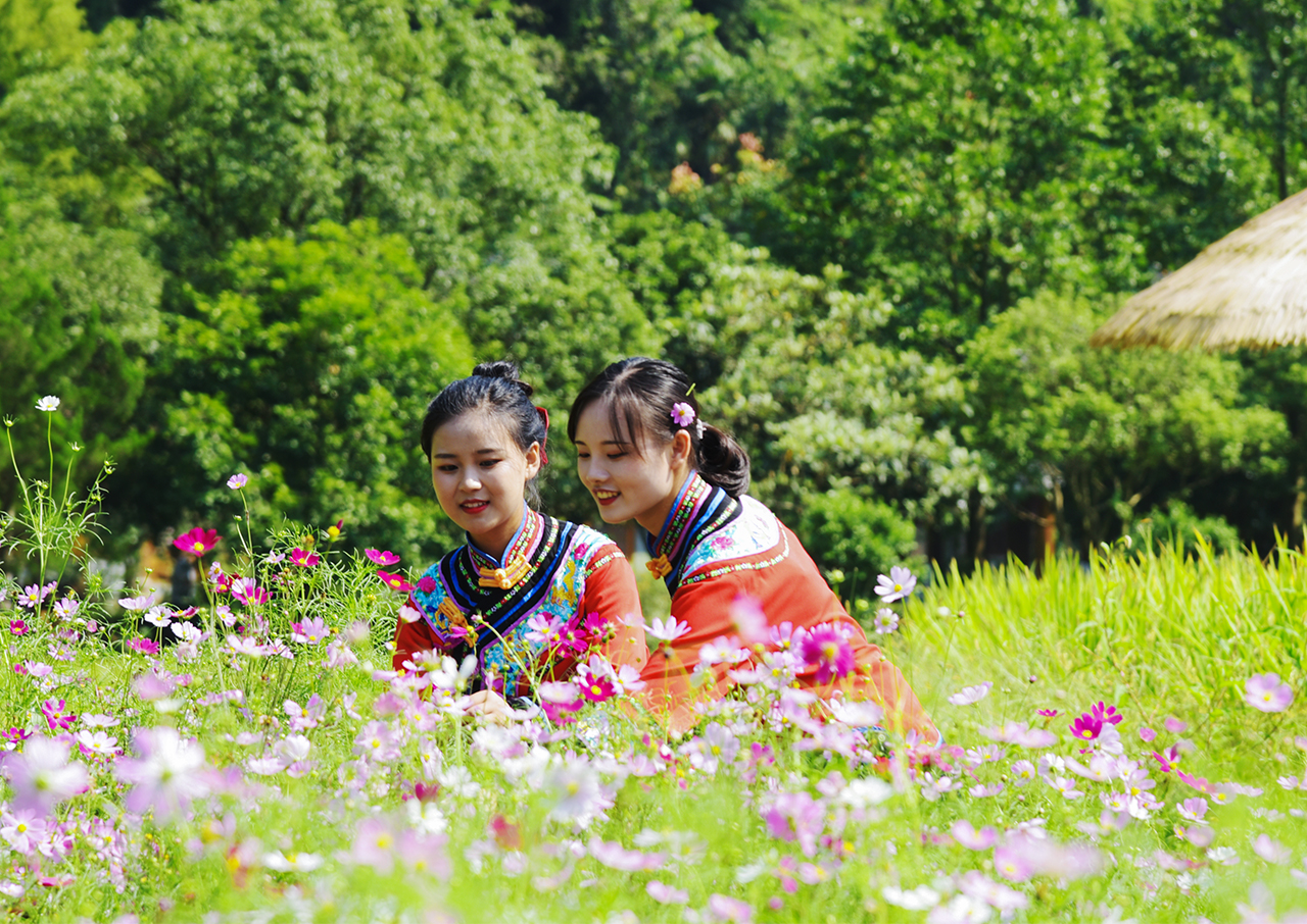 9月7日,白露節(jié)氣,張家界市武陵源區(qū)黃龍洞景區(qū)生態(tài)廣場,百日菊、格桑花爭相綻放